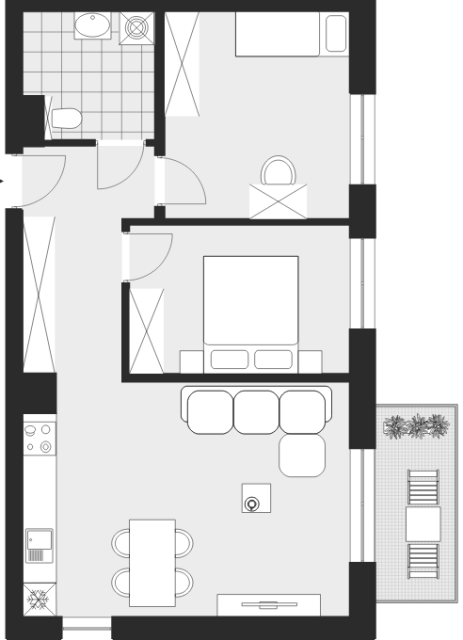 Oferujemy 3-pokojowe mieszkanie składające się z salonu z aneksem kuchennym, dwóch sypialni, łazienki i balkonu, mieszczące się w inwestycji Sobieskiego 29.